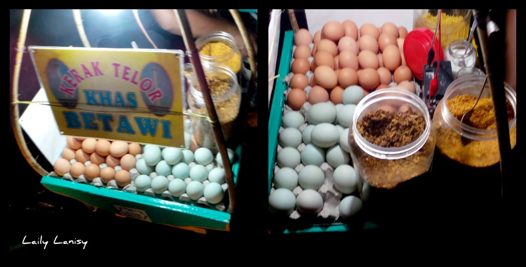 Malam ini tiba-tiba aku ingin sekali makan Kerak Telor. Diantar Maga, kami mencoba peruntungan pergi ke kawasan Tugu Monas. Ternyata pada malam Minggu seperti malam ini, banyak abang-abang yang menjajakan makanan khas Betawi ini
