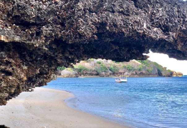 Dari Hotel kami, Neberala Beach Resort, kami berjalan ke arah kiri, menyusuri jalan beton yang sudah dibangun sepanjang Pantai. Dari hotel hingga bukit karang di ujung sebelah kiri, berjarak sekitar 3 Km.