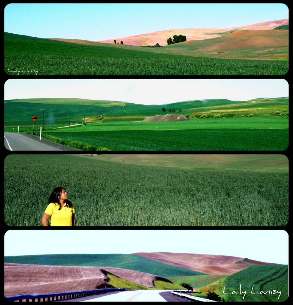 One of these beautiful places is Palouse, about 15 miles north of Pullman, where the Washington State University is located. Thousands of acres of wheat fields with an array of different colors, due to the differences in the planting and harvest time, decorate the hilly area. Very charming…..