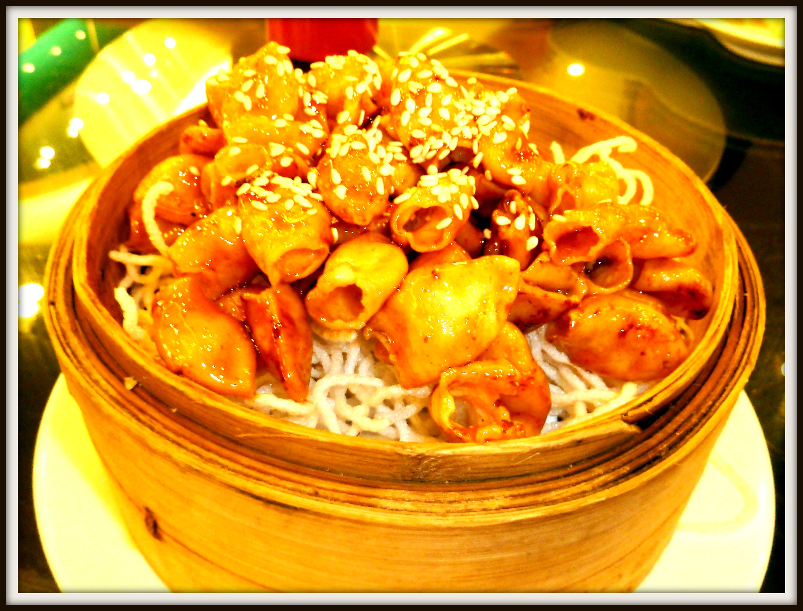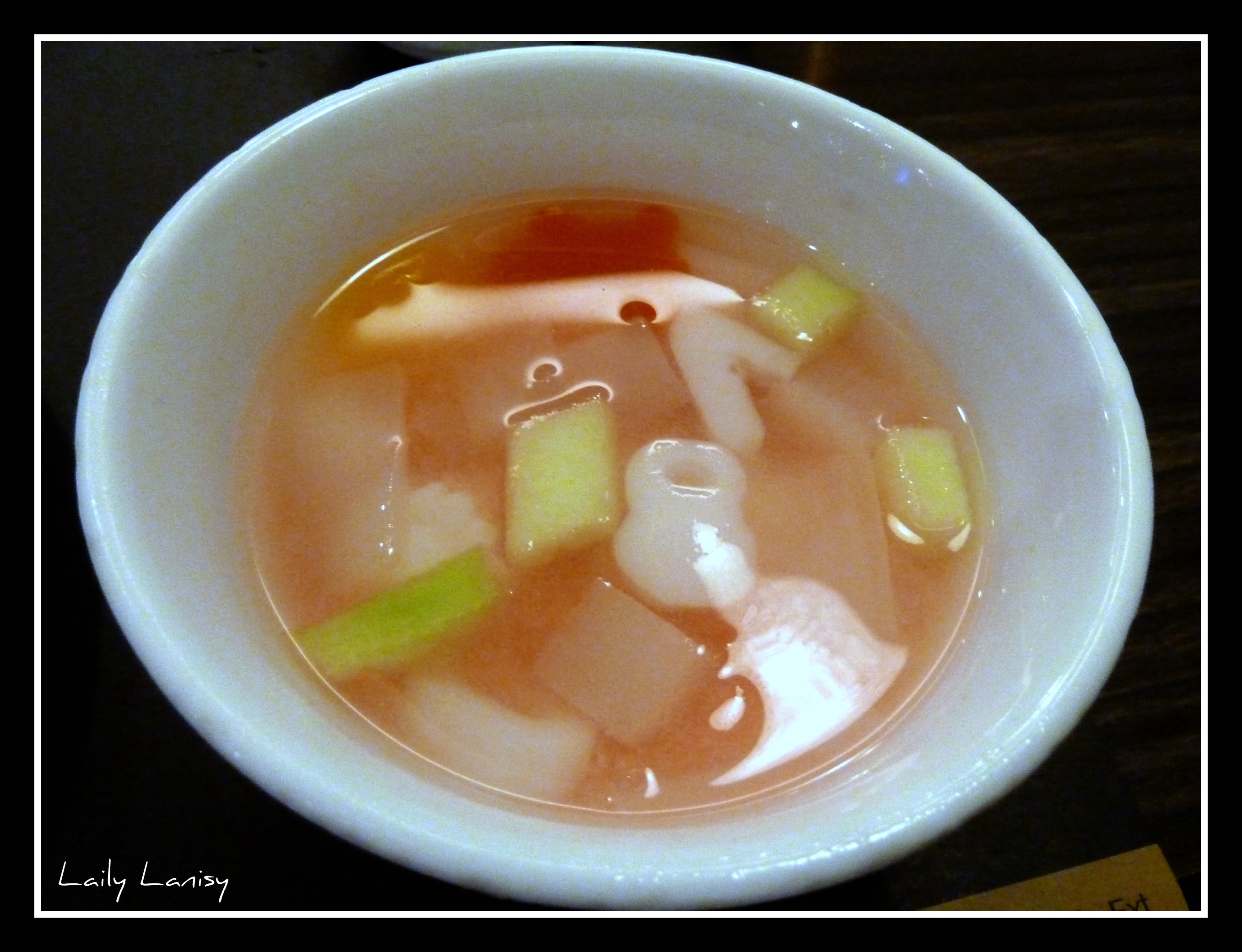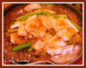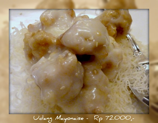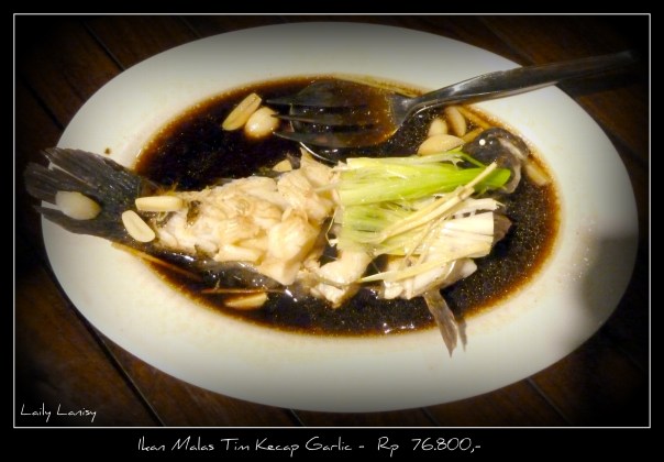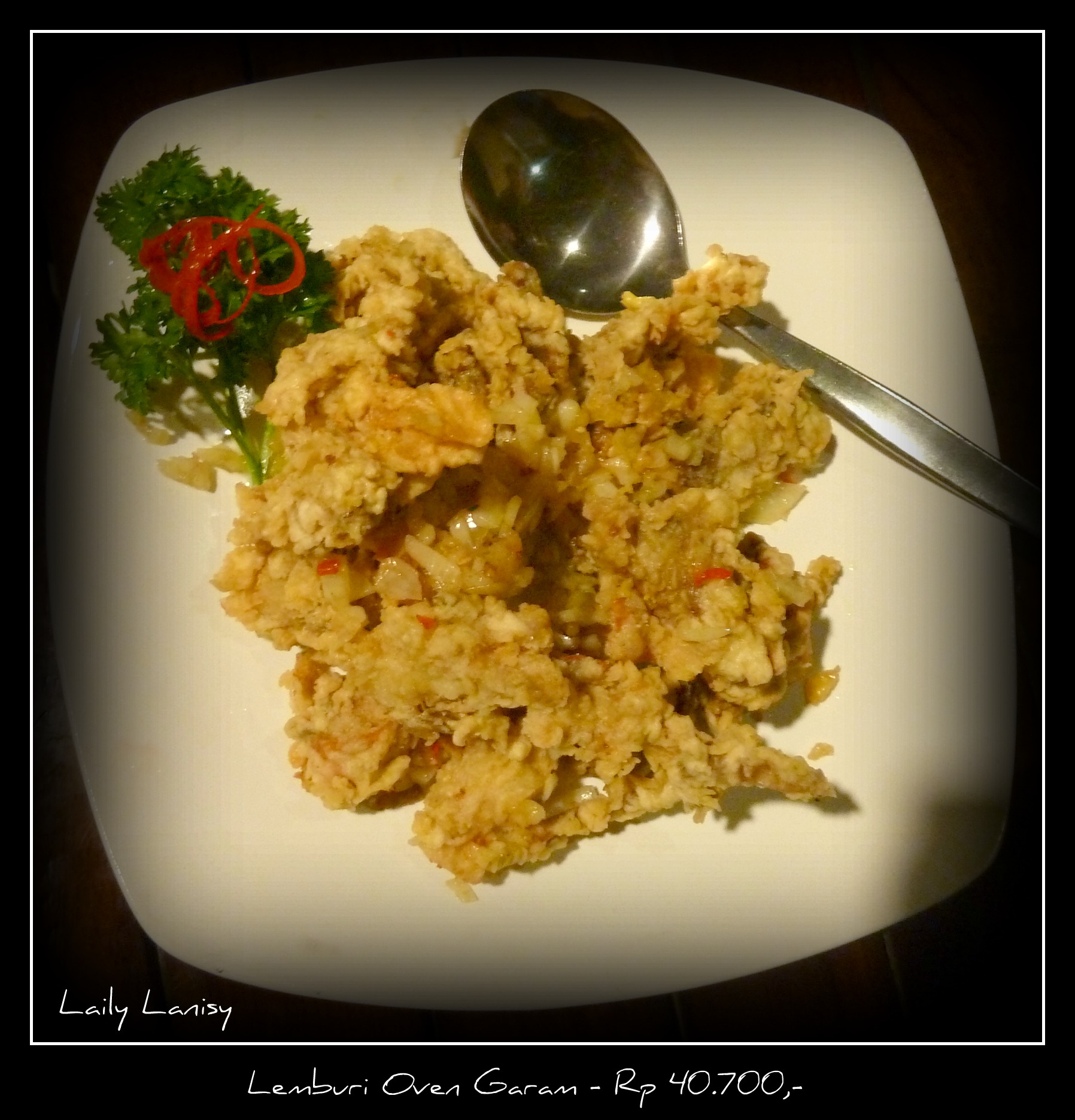 Pada waktu memesan Sapi Mongolia, saya pikir yang akan disajikan adalah sapi ala Mongolian grill yang kering. Ternyata yang keluar adalah Sapi Mongolia khas Pelem Golek yang sedikit berkuah dan disajikan di atas pepaya matang yang manis. Rasa yang tercipta adalah rasa nano-nano … asam, manis dan pedas. Sapi Mongolia merupakan salah satu signature dish nya Pelem Golek, restauran yang sebenarnya lebih mengkhususkan pada ikan.